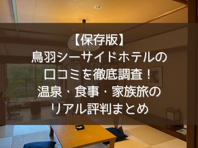 【保存版】鳥羽シーサイドホテルの口コミを徹底調査!温泉・食事・家族旅のリアル評判まとめ
