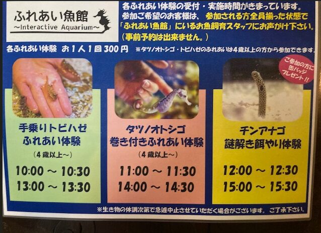 バックヤードでは、タツノオトシゴのえさやりもできます♪