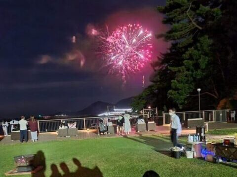 花火を見ながら、マシュマロバーベキューやコーヒーも飲むことができます。